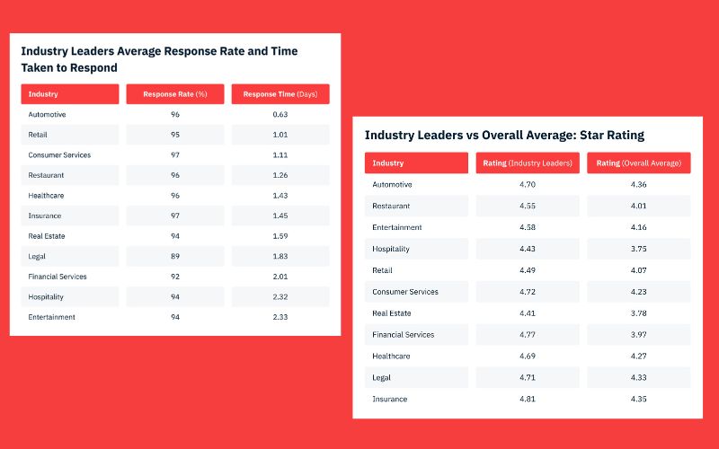 Top-performing brands maintain average ratings of 4.5 stars or higher and generate twice as many reviews per month as the rest of the market, according to InMoment’s benchmarking. These sector leaders are also far more responsive, with reply rates exceeding 95% and many responding to customer feedback in under 24 hours. Meanwhile, the underperforming sectors lag across key experience markers, signalling significant risk to reputation and brand presence.