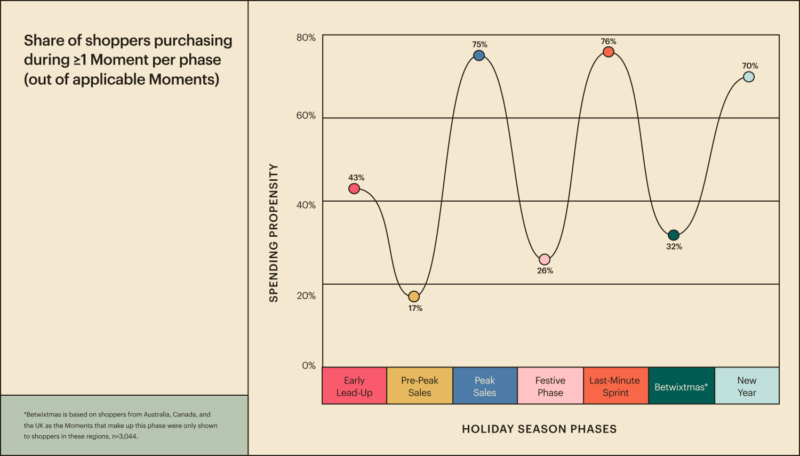 • Betwixtmas (Between Christmas and New Year): This is a time for self-gifting. 68% of Australian, Canadian, and UK shoppers who considered a Boxing Day purchase were buying for themselves.